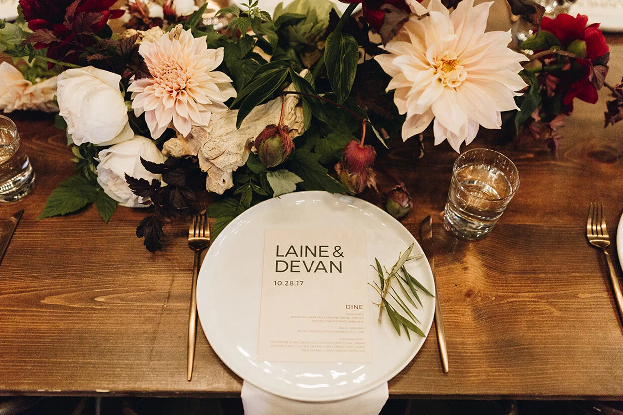 Laine + Devan were having an elegance, organic, modern fall wedding and wanted me to design some “day ofs” to reflect their vibe. I LOVE a modern, simple look, if you can’t tell! Laine’s father made all these copper hangers–amazing. I used different papers, shapes and printing methods to add texture and cohesiveness in a modern way. I LOVE how these turned out! Remember the day ofs for your wedding.. will I need menus, programs, escort cards or a seating chart, cocktail napkins, etc. We can help you with ALL of these and they really pull the look of your wedding together. xo